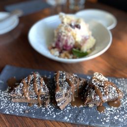 Griddled Banana Bread, Hazelnut Chocolate Ganache, Amarena Cherry-Balsamic Berry Glaze